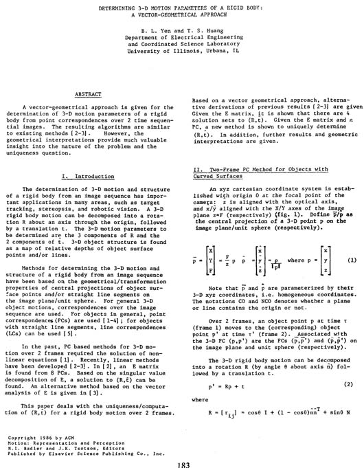 "Determining 3D Motion Paramters of a Rigid Body: A Vector Geometrical Approach: