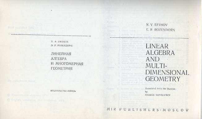 Linear Algebra & Multi-Dimensional Geometry/Efimov & Rozendorn